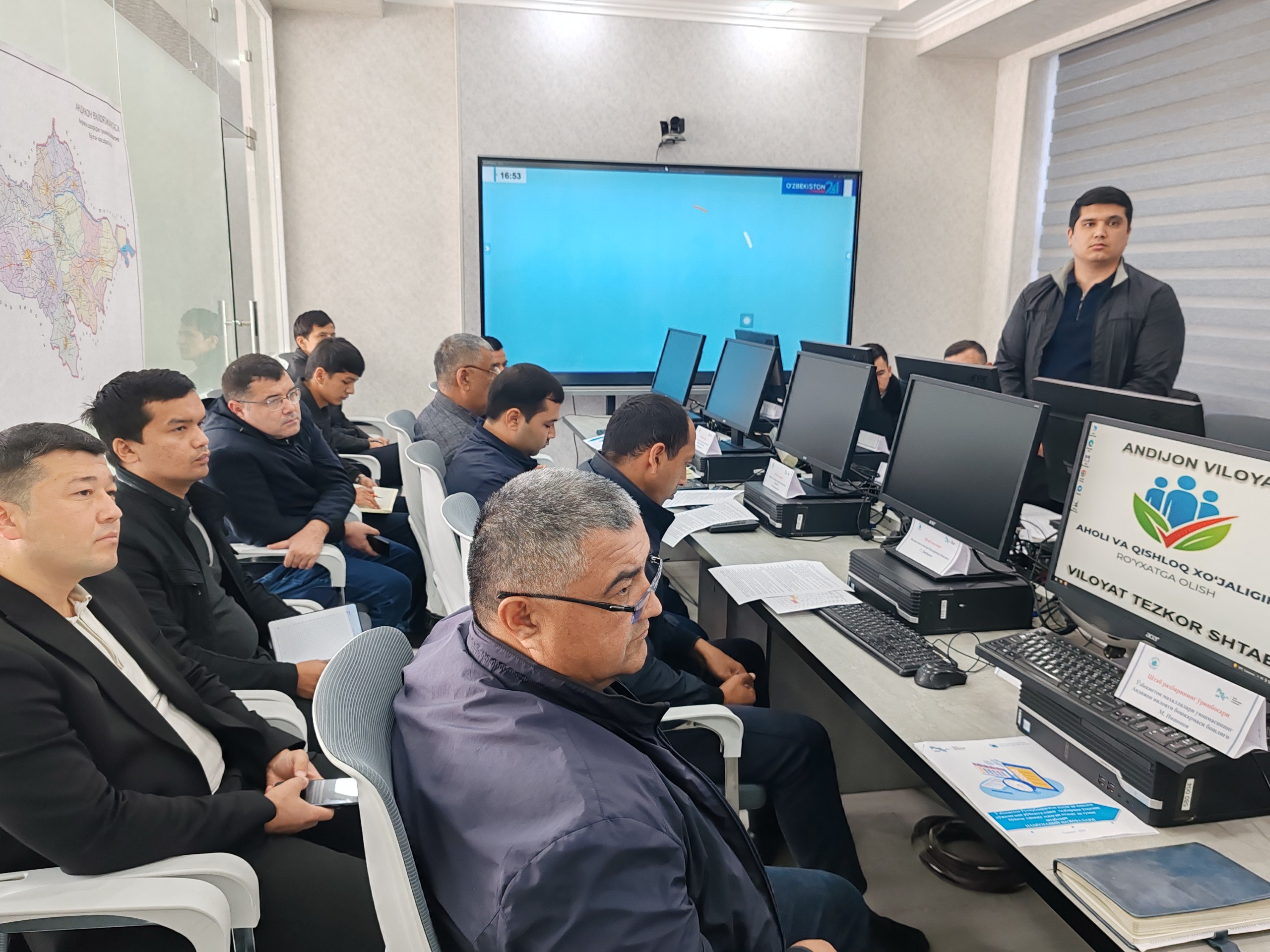 Joriy yilning 5-noyabr kuni Andijon viloyati shtabida o‘tkazilgan yig‘ilishda Kambag‘allaikni qisqartirish va bandlik vazirligidan vakil J.Rashidov, Milliy statistika qo‘mitasi bo‘lim boshlig‘i M.Toshpulatovlar Andijon viloyatida bo‘lib, aholi va qishloq xo‘jaligini ro‘yxatga olish tadbiriga tayyorgarlik ishlari bilan tanishdi.