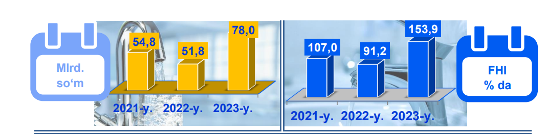 Suv bilan ta’minlash, kanalizatsiya tizimi, chiqindilarni yig‘ish va utilizatsiya qilish korxonalari tomonidan ishlab chiqarilgan mahsulotlar hajmi 78,0 mlrd.so‘mni (jami ishlab chiqarilgan sanoat mahsulotlari hajmining 0,3 % ini) tashkil etdi.