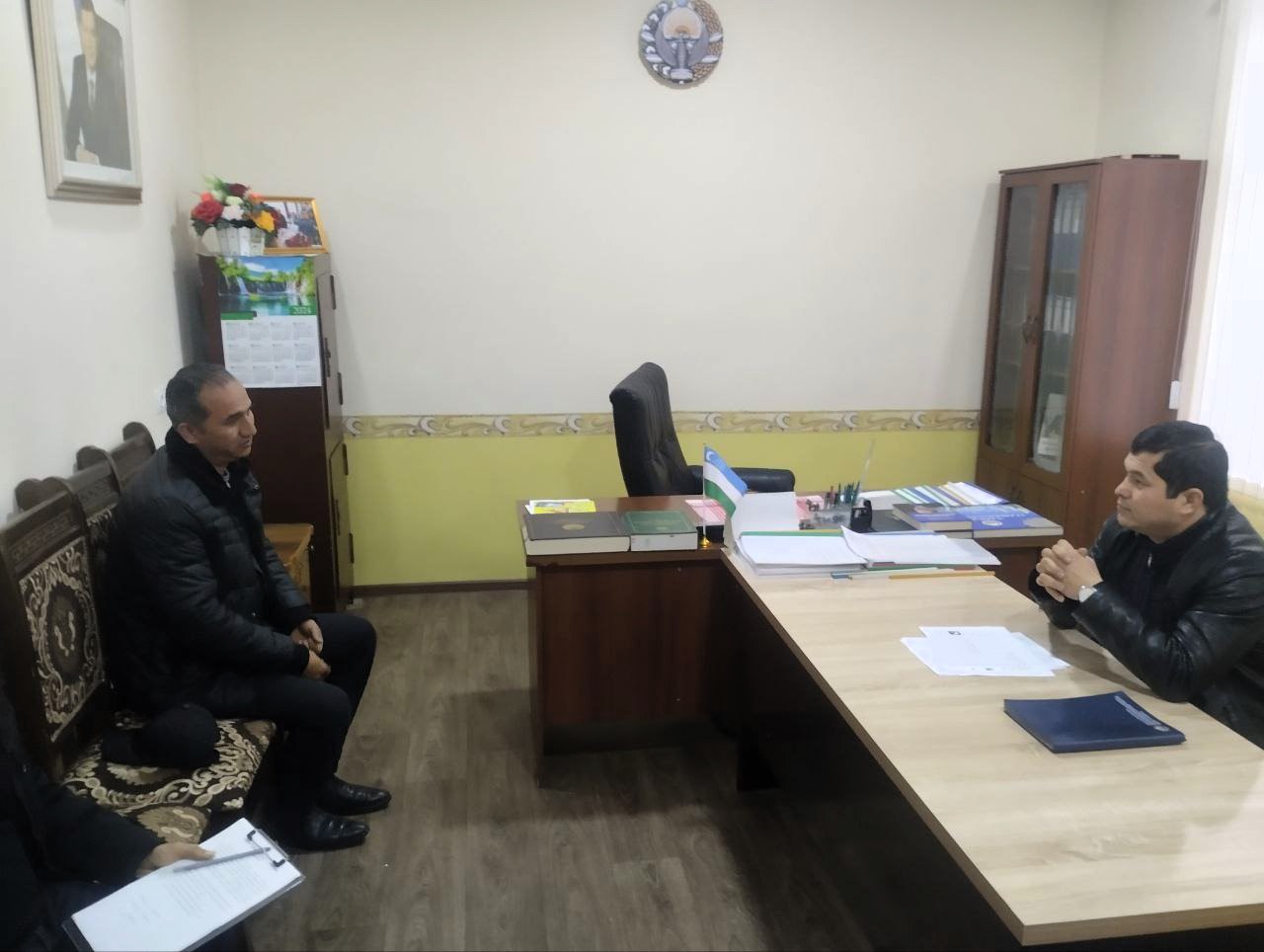 Joriy yilning 16-yanvar kuni Andijon viloyati statistika boshqarmasi boshlig‘ining birinchi o‘rinbosari M. Yusupov hamda Andijon tumani statistika bo’limi xodimi A.Bozorov bilan birgalikda Andijon tumani Yangiobod MFYda bo‘lib, mahalla fuqarolar yig'ini raisi bilan 2024-yilda o‘tkaziladigan uy xo‘jaliklari kuzatuvlariga puxta tayyorgarlik ko‘rish bo‘yicha fikrlar almashdilar.