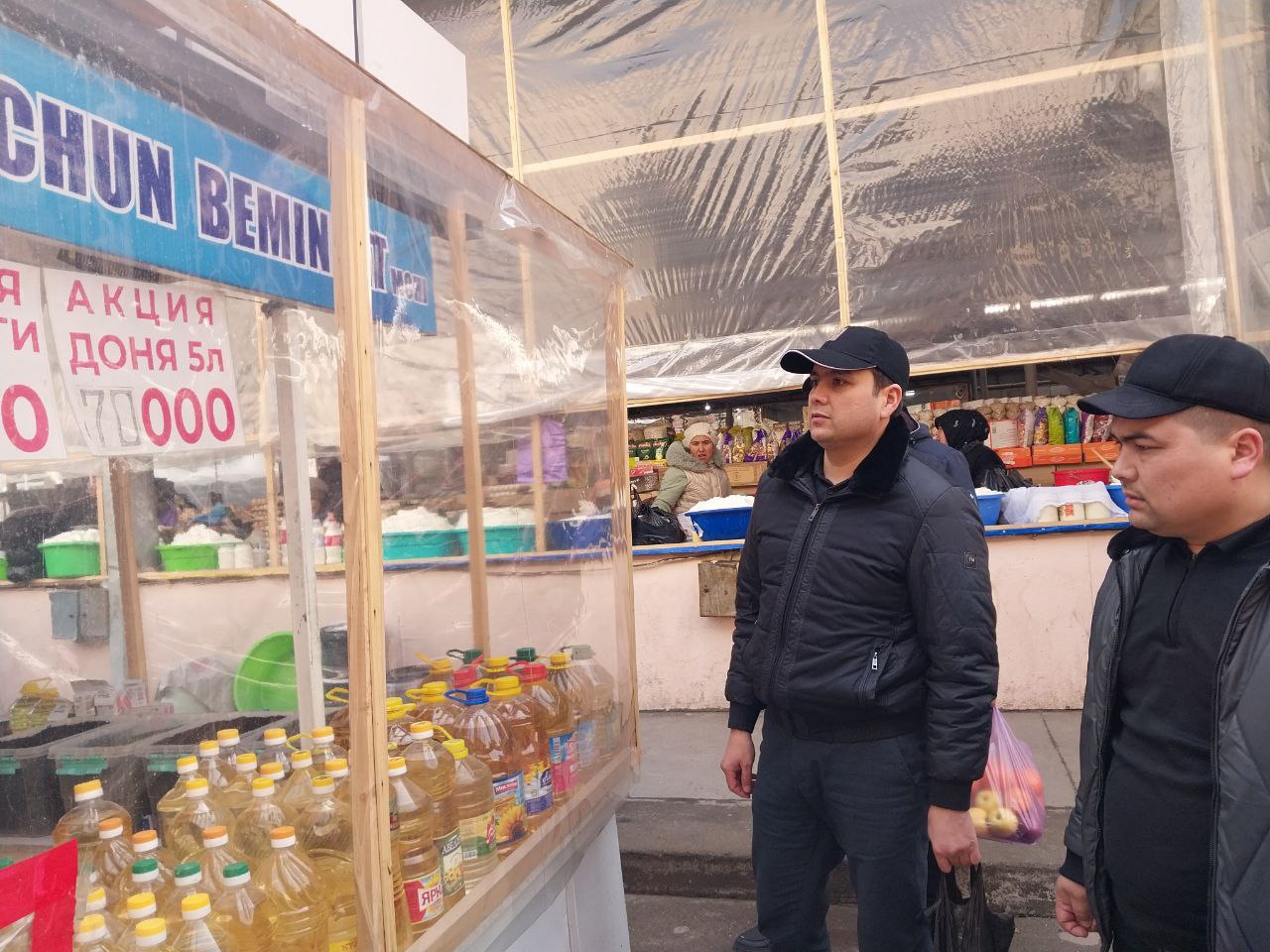 Joriy yiling 5-mart kuni Andijon viloyati statistika boshqarmasi boshlig‘i N.G‘.To‘xtaboyev va Andijon viloyati statistika boshqarmasi Narx statistikasi bo‘limi yetakchi mutaxassisi Sh.Qodirov bilan birgalikda Andijon shahridagi “Yangi bozor” dehqon bozorida 5-narx (o‘rtacha) haftalik kuzatuvlarining nazorati bo‘yicha kuzatuvlar olib bordilar.