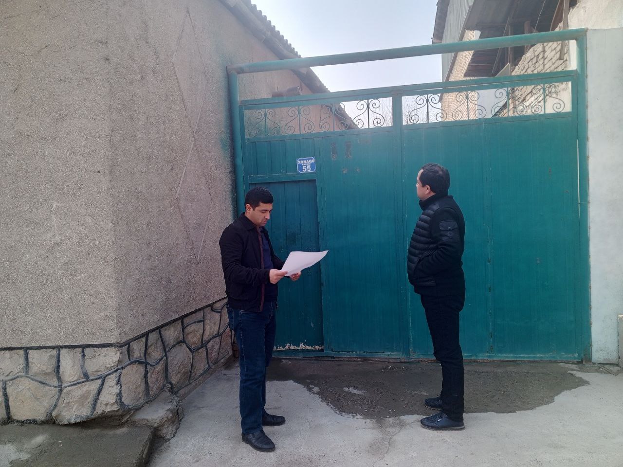 Jumladan, joriy yilning 5-mart kuni Andijon viloyati statistika boshqarmasi ro’yhatga olish jarayonlarini tashkil etish va o’tkazish bo’limi boshlig’i B.G’ulomjonov tomonidan Asaka tumani Xonaqa MFYda xonadonlar raqamlanish holati hamda nomi o‘zgargan ko‘chalarga yangi nom belgilarini o‘rnatish jarayoni o‘rganildi.