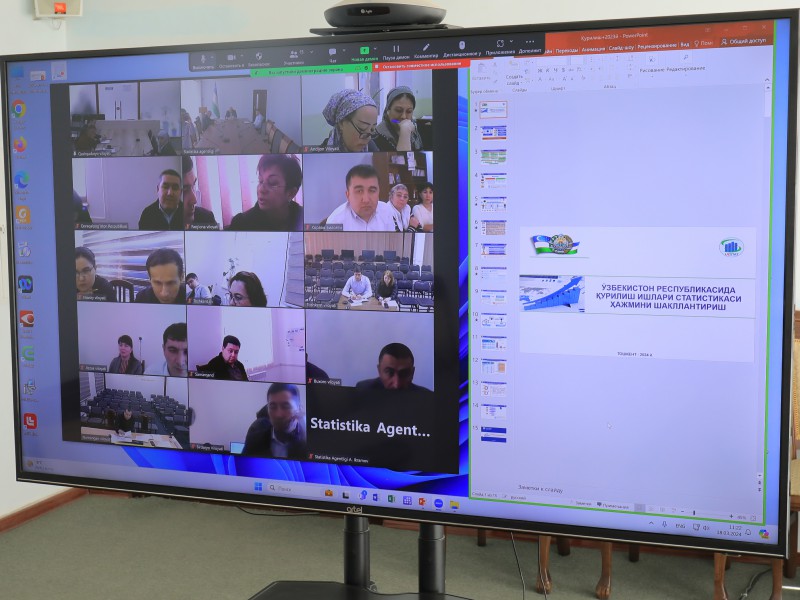 Joriy yilning 18-mart kuni Oʻzbekiston Respublikasi Prezidenti huzuridagi Statistika agentligida Qoraqalpogʻiston Respublikasi, viloyatlar va Toshkent shahar statistika boshqarmalarining Investitsiyalar va qurilish statistikasi boʻlimi xodimlari uchun investitsiyalar va qurilish statistikasiga oid koʻrsatkichlar va ularni shakllantirish tartibi boʻyicha amalga oshirilayotgan ishlar holati va kelgusidagi ustuvor vazifalar yuzasidan vebinar tashkil etildi.