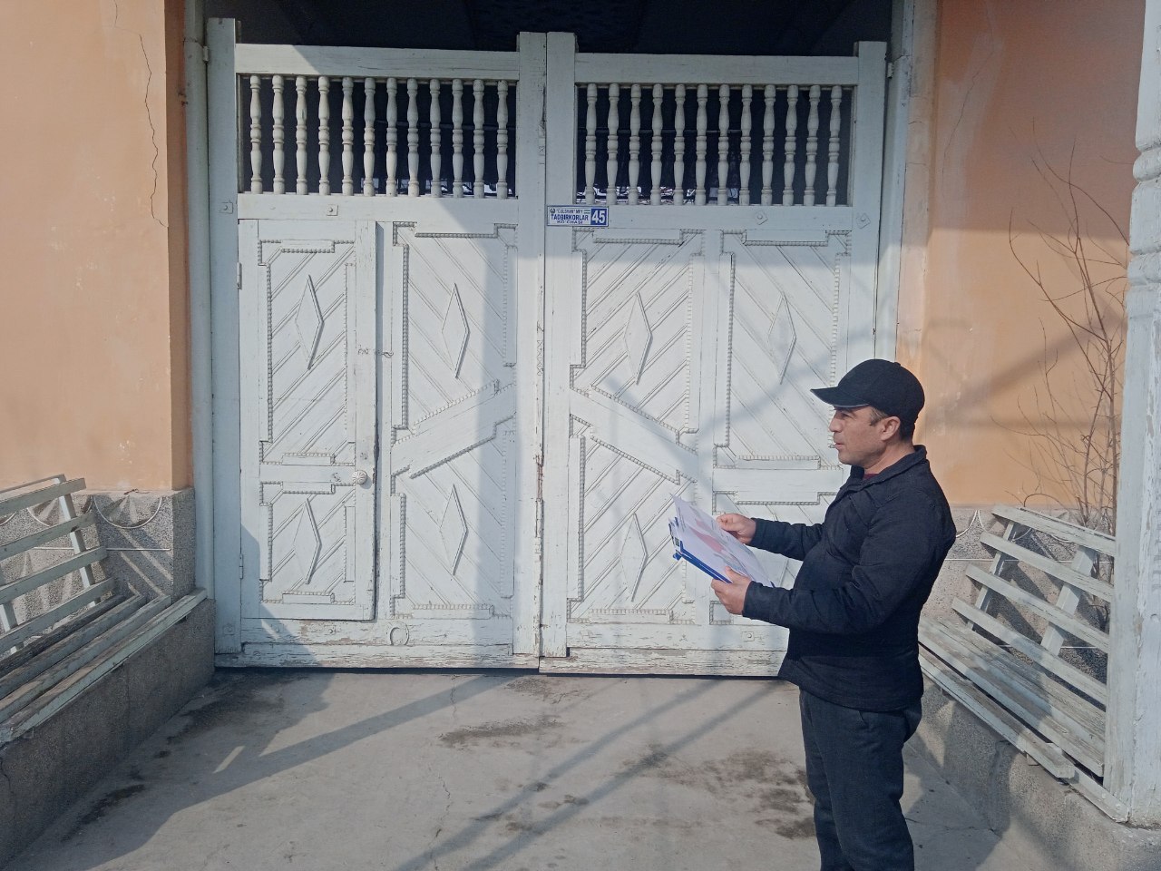 Jumladan, joriy yilning 18-mart kuni Andijon viloyati statistika boshqarmasi ro’yhatga olish jarayonlarini tashkil etish va o’tkazish bo’limi yetakchi mutaxassisi M.Turakulov tomonidan Bo‘ston tumani Gulshan MFYda xonadonlar raqamlanish holati hamda nomi o‘zgargan ko‘chalarga yangi nom belgilarini o‘rnatish jarayoni o‘rganildi.