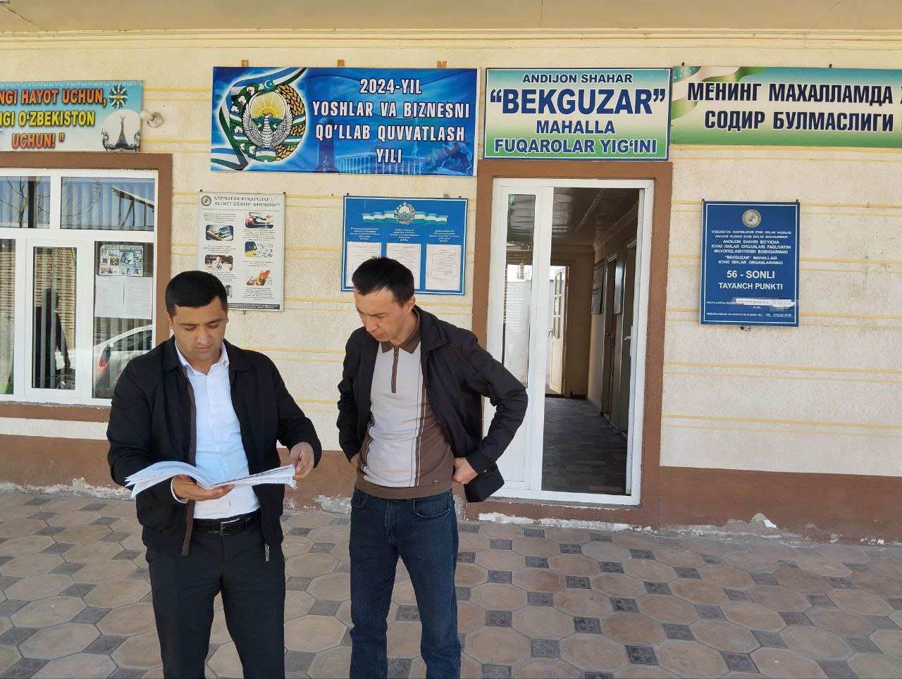 Jumladan, joriy yilning 25-mart kuni Andijon viloyati statistika boshqarmasi ro’yhatga olish jarayonlarini tashkil etish va o’tkazish bo’limi boshlig’i B.G’ulomjonov tomonidan Andijon shahar Bekguzar MFYda xonadonlar raqamlanish holati hamda nomi o‘zgargan ko‘chalarga yangi nom belgilarini o‘rnatish jarayoni o‘rganildi.