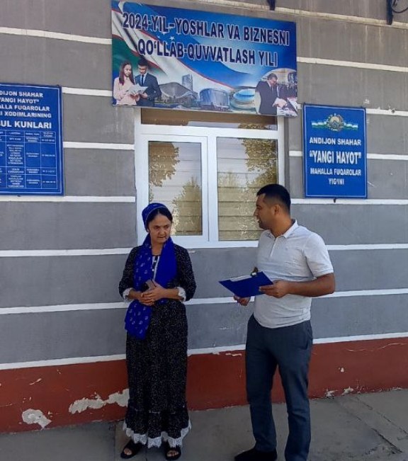 Jumladan, joriy yilning 13-sentabr kuni Andijon viloyati statistika boshqarmasi ro’yhatga olish jarayonlarini tashkil etish va o’tkazish bo’limi boshlig’i B.G’ulomjonov tomonidan Andijon shahar Yangi hayot MFYda xonadonlar raqamlanish holati hamda nomi o‘zgargan ko‘chalarga yangi nom belgilarini o‘rnatish jarayoni o‘rganildi.