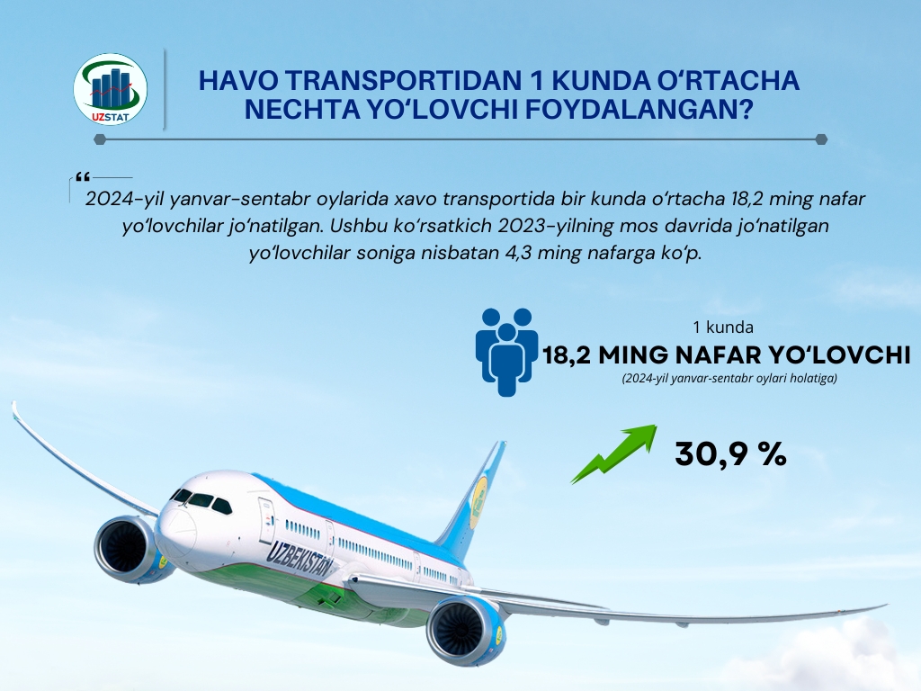Havo transportidan 1 kunda oʻrtacha nechta yoʻlovchi foydalangan?