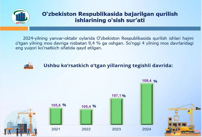 Izboskan tumanida 10 oyda bajarilgan qurilish ishlari 13,9 % ga o‘sgan