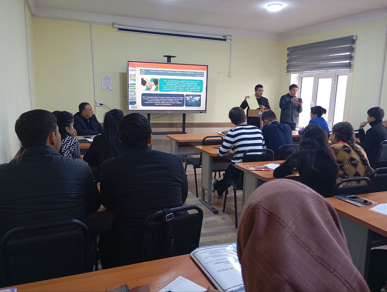 Andijon viloyati statistika boshqarmasining Roʻyxatga olish jarayonlarini tashkil etish va oʻtkazish boʻlimi boshlig'i B.G'ulomjonov tomonidan joriy yilning 13-dekabr kuni Toshkent davlat iqtisodiyot universiteti Andijon fakultetida “Aholini royxatga olishga tayyorgarlik ko'rish” mavzusida davra suhbati o‘tdi.
