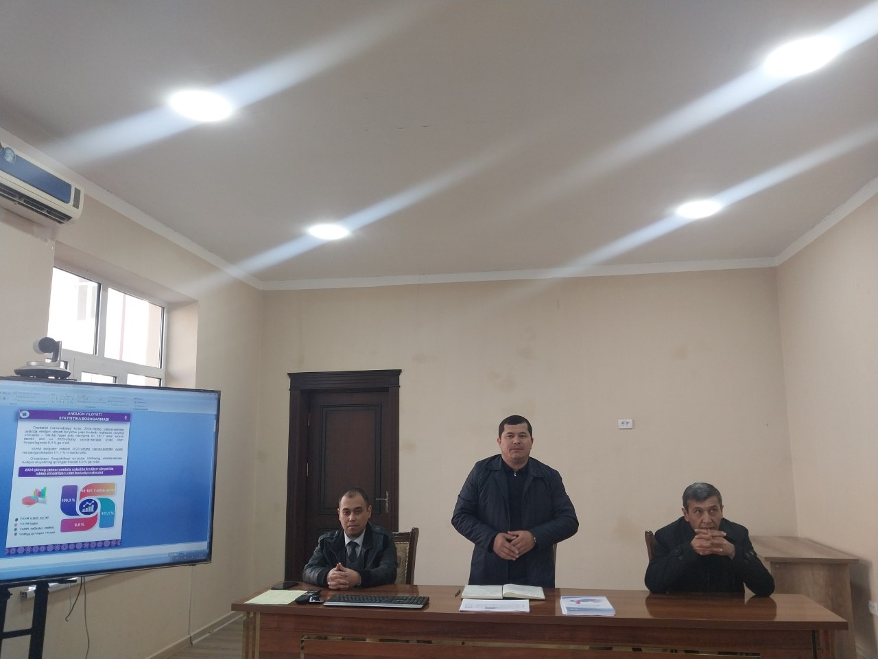 Shuningdek, viloyat Statistika boshqarmasi boshlig'i o'rinbosari M.Yusupov tomonidan Andijon Iqtisodiyot va Qurilish instituti professor o'qituvchilari hamda talabalar ishtirokida davra suhbati tashkil etilib, ularga tashkilot ish faoliyati, ichki tartib qoidalari, statistik hisobotlar va kuzatuvlarni o’tkazish bo’yicha atroflicha ma’lumotlar berildi.