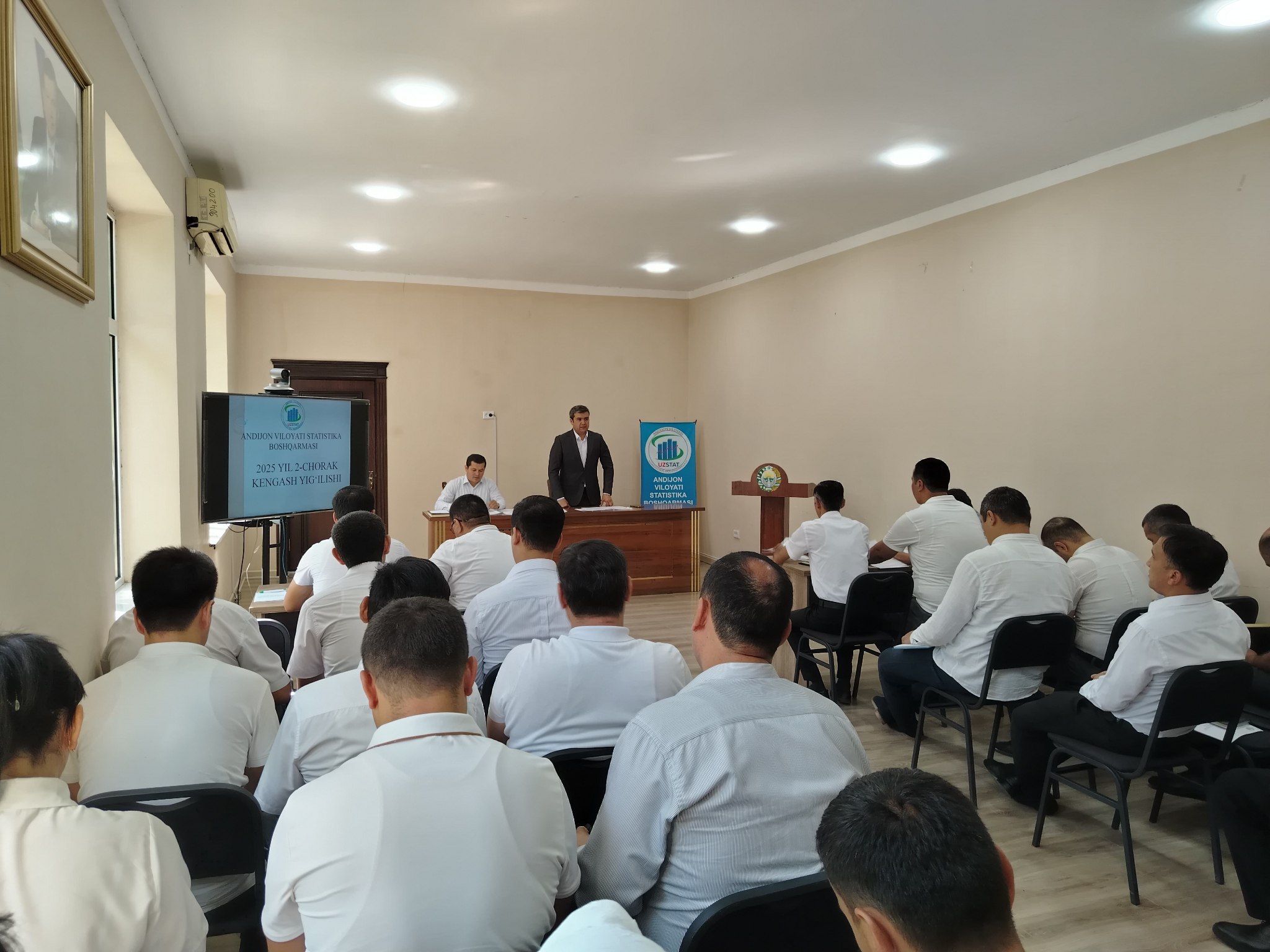 Joriy yilning 29- iyul kuni Andijon viloyati statistika boshqarmasida 2025-yil I-yarim yillik yakunlari boʻyicha kengaytirilgan Kengash yigʻilishi oʻtkazildi.