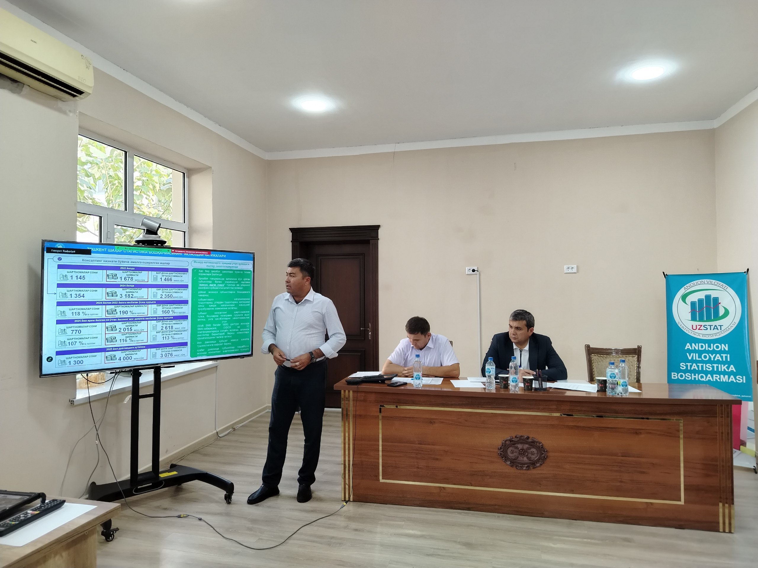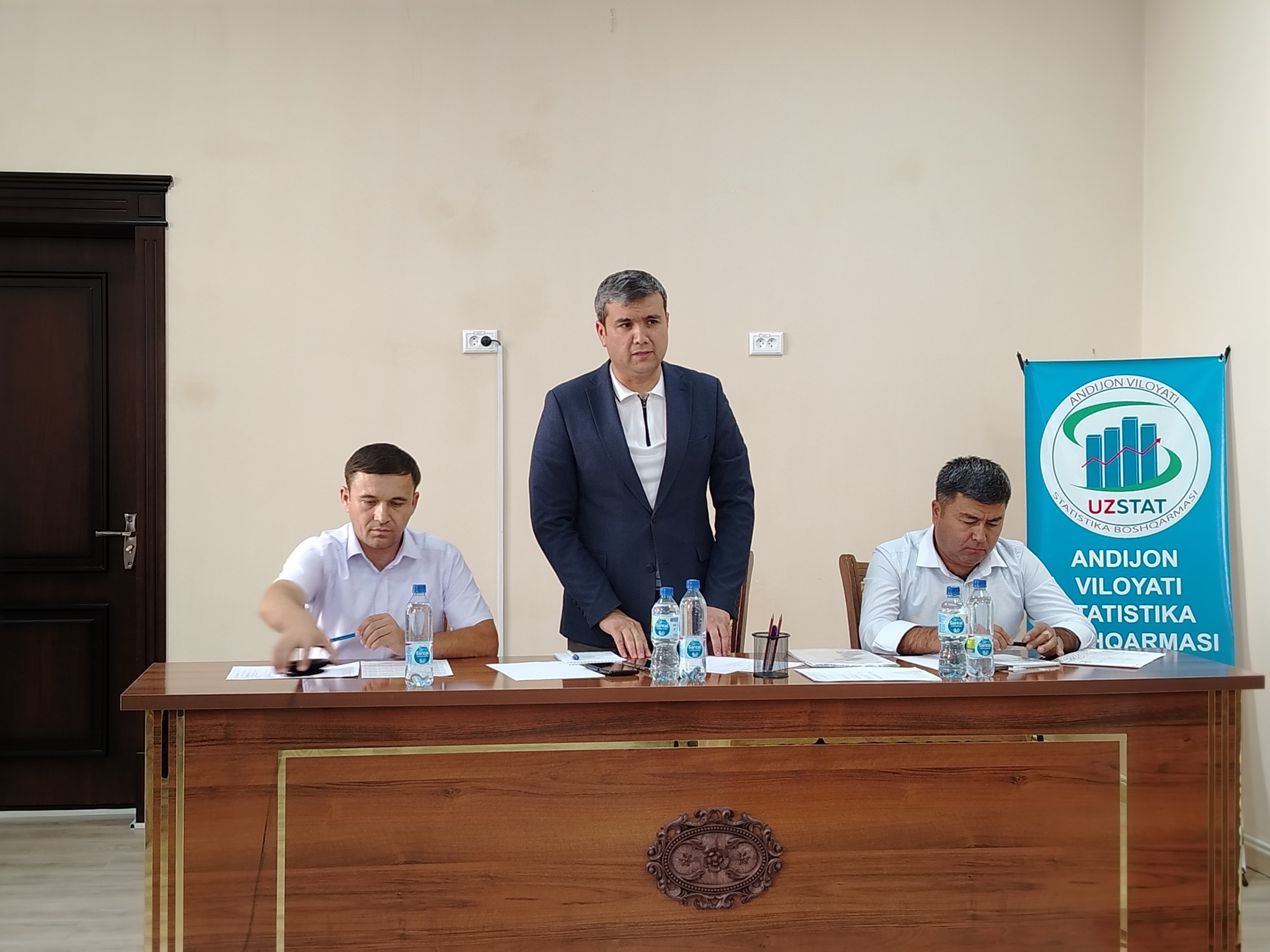 2025-yil 10-sentyabr kuni Andijon viloyati statistika boshqarmasida Milliy statistika qo‘mitasi tomonidan hududiy statistika organlari xodimlari uchun “Biznes uchun statistika” yo‘nalishida sayyor o‘quv-seminar tashkil etildi.