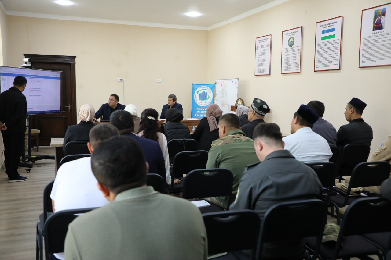 O‘zbekiston Respublikasi Prezidentining “Aholi va qishloq xo‘jaligini ro‘yxatga olish to‘g‘risida”gi PF–173-sonli Farmoni ijrosini ta’minlash maqsadida Andijon viloyati statistika boshqarmasida o‘quv seminari tashkil etildi.
