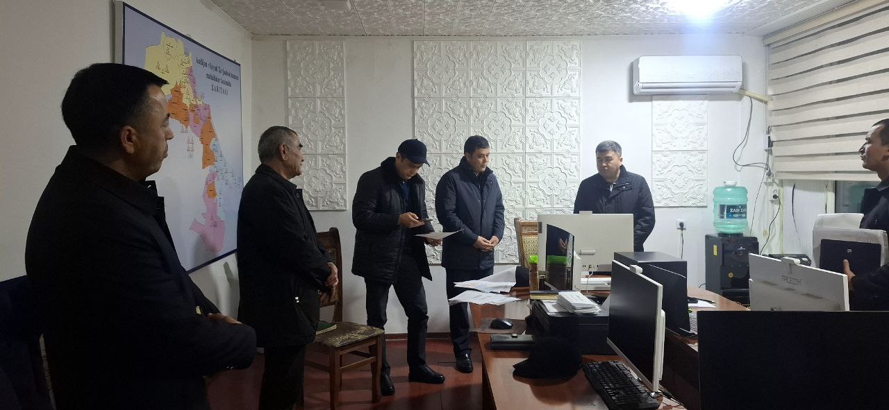 Xo'jaobod tumanida olib borilayotgan jarayonlarni bevosita kuzatib, aholi va qishloq xo‘jaligini ro‘yxatga olish tadbirining borishi, amalga oshirilayotgan ishlar yuzasidan mas’ullarga tegishli ko‘rsatma va tavsiyalar berdi.