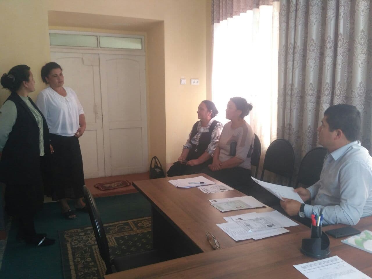 Xoʼjaobod tumanida 2021 yil 1-25 noyabr kunlari amalga oshiriladigan aholini sinov tariqasida roʼyxatga olish tadbiriga tayyorgarlik koʼrish maqsadida aholini roʼyxatga olish jarayoniga jalb etiladigan shaxslar bilan suxbat oʼtkazish jarayoni.
