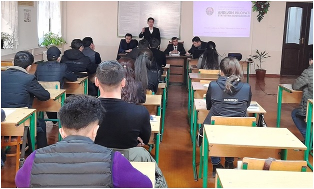 Tadbir avvalida boshqarma boshlig‘ining birinchi o‘rinbosari F. Jololov viloyatda statistika sohasida amalga oshirilayotgan ishlar, statistika axborotlarining haqqoniyligi va shaffofligini ta’minlash to‘g‘risida talabalarga tuchunchalar berdi.