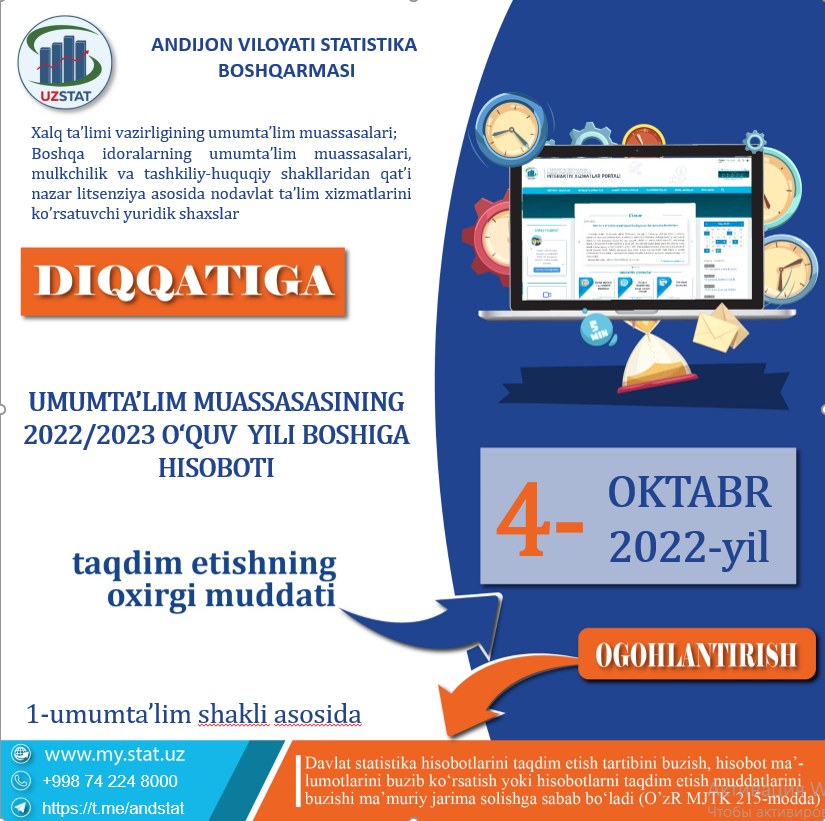 Xalq taʼlimi vazirligining umumtaʼlim muassasalari; Boshqa idoralarning umumtaʼlim muassasalari, mulkchilik va tashkiliy-huquqiy shakllaridan qatʼi nazar litsenziya asosida nodavlat taʼlim xizmatlarini koʼrsatuvchi yuridik shaxslar diqqatiga!