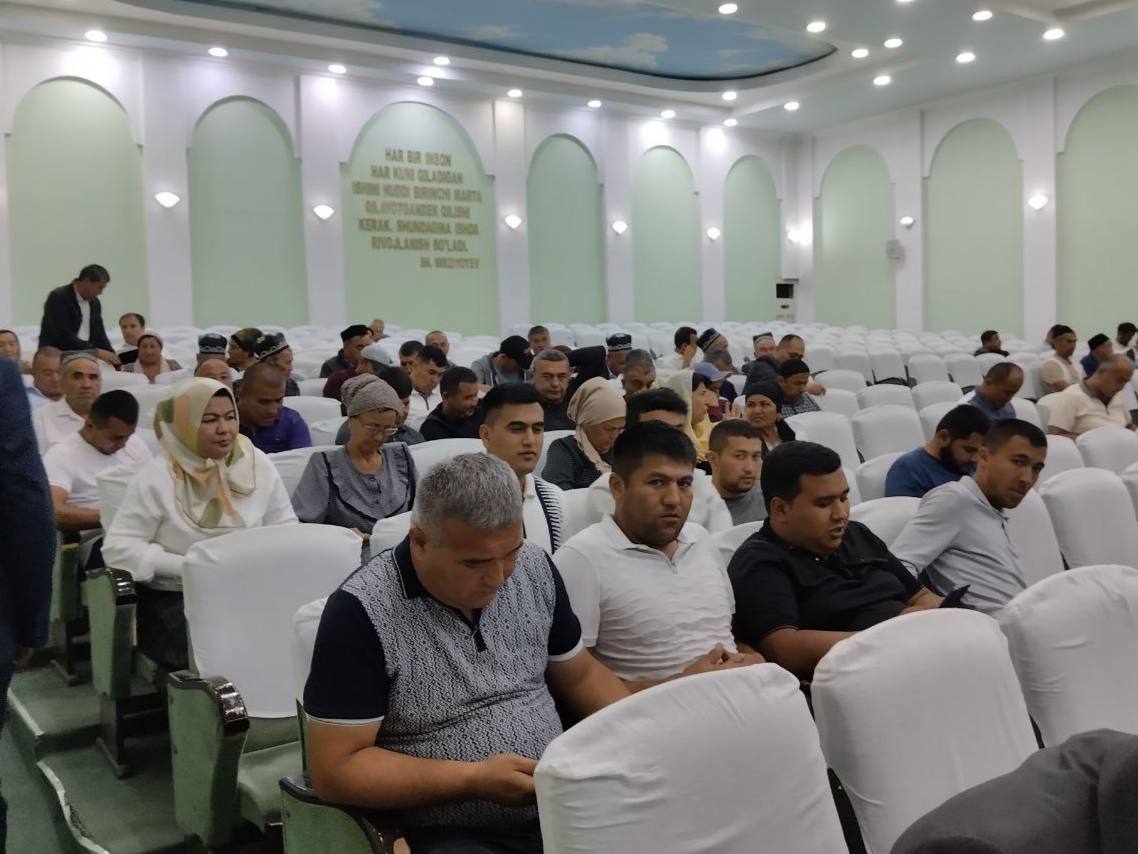 2022- yilning 19- sentabr kuni Andijon viloyati statistika boshqarmasi bosh yurist konsulti D.Rasulov, Andijon shahridagi Al-Buhoriy MFYdagi mahalla fuqarolari va tadbirkorlari bilan birgalikda O‘zbekiston Respublikasining 2022- yil 17- avgustdagi “Aholini va hududlarni tabiiy hamda texnogen xususiyatli favqulodda vaziyatlardan muhofaza qilish to‘g‘risida”gi O‘RQ-790- sonli Qonunning mazmun-mohiyati yuzasidan yig‘ilish o‘tkazildi. Yig‘ilishda boshqarma bosh yuriskonsulti D. Rasulov mavzu yuzasidan ma’ruza qildi va ishtirokchilar ham o‘z fikr mulohazalari bilan faol qatnashishdi.