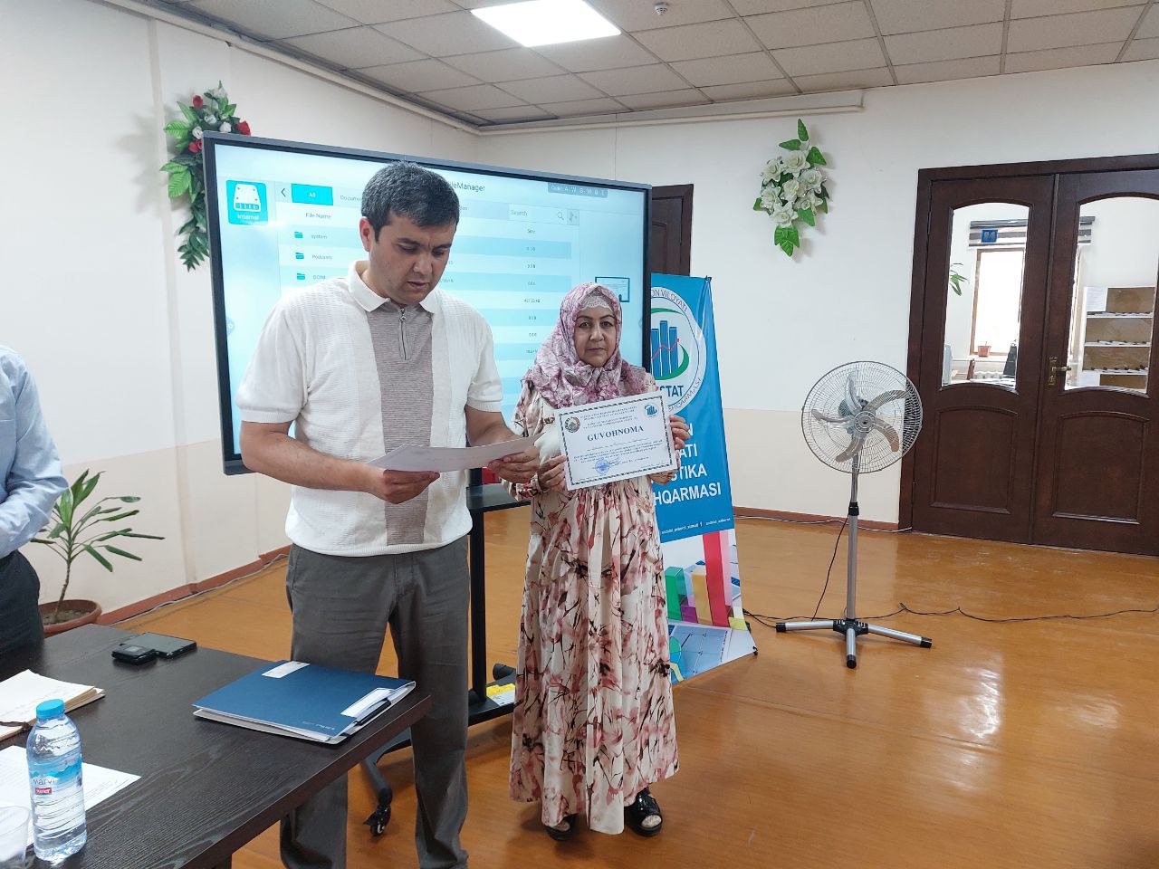 Avval xabar berilganidek, Andijon viloyatida O‘zbekiston Respublikasi Prezidenti huzuridagi Statistika agentligi qoshidagi Kadrlar malakasini oshirish va statistik tadqiqotlar institutining professor-o‘qituvchilari tomonidan mahalliy davlat hokimiyati organlari hamda iqtisodiyot tarmoqlari iqtisodchi xodimlarining amaliy bilim va ko‘nikmalarini shakllantirish maqsadida o’tkazilgan"Statistika asoslari" sayyor o‘quv kursi yakunlandi.