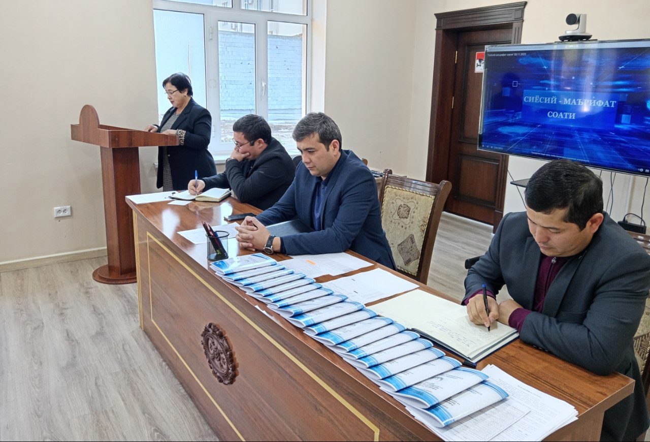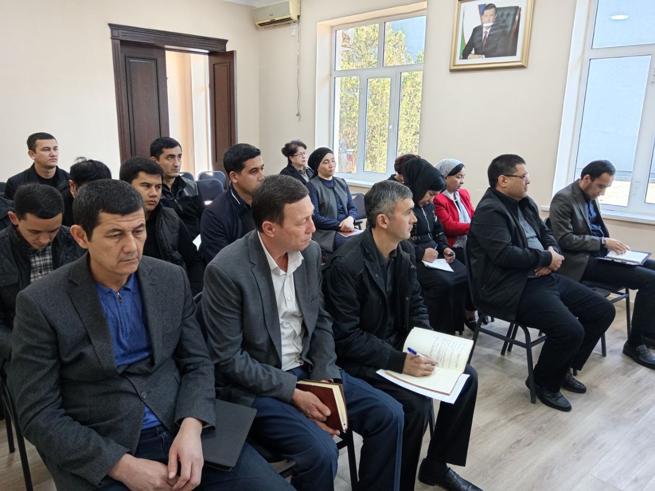 2023-yil 3-noyabr kuni boshqarmada navbatdagi “Korrupsiyasiz taraqqiyot sari” mavzusida ma’naviyat soati bo‘lib o‘tdi. Tadbirda boshqarma boshlig‘i N.G‘. To‘xtaboyev, boshqarma bolig‘ining o‘rinbosarlari M. Yusupov va D. Yangiyevlar, ma’naviy va ma’rifiy ishlar mas’ul xodimi J.Tuxtabayeva hamda boshqarma xodimlari ishtirok etdilar.