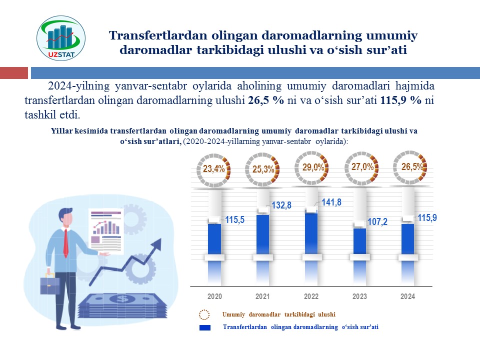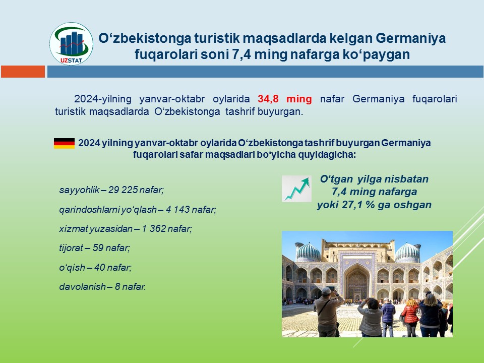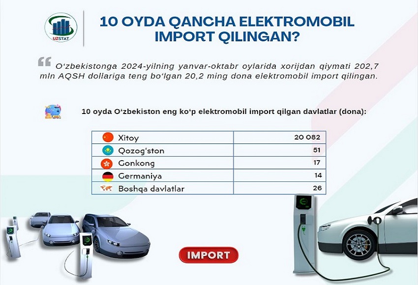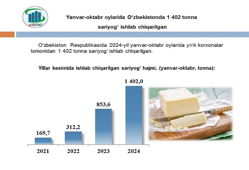 2024-yilning yanvar-oktabr oylari yakuni bo‘yicha 424,3 mln. AQSh dollarilik to‘qimachilik mahsulotlari eksporti amalga oshirilib, umumiy eksportning 45,4 % ini tashkil etib, o‘tgan yilga nisbatan 3,1 % ga ortdi.