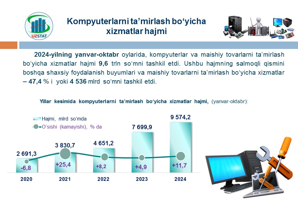 2024-yilning yanvar-oktabr oylari holatiga, Chakana savdo tovar aylanmasi tarkibida yirik korxonalarning tovar aylanmasi hajmi 1 745,2 mlrd. so‘mni tаshkil qildi.