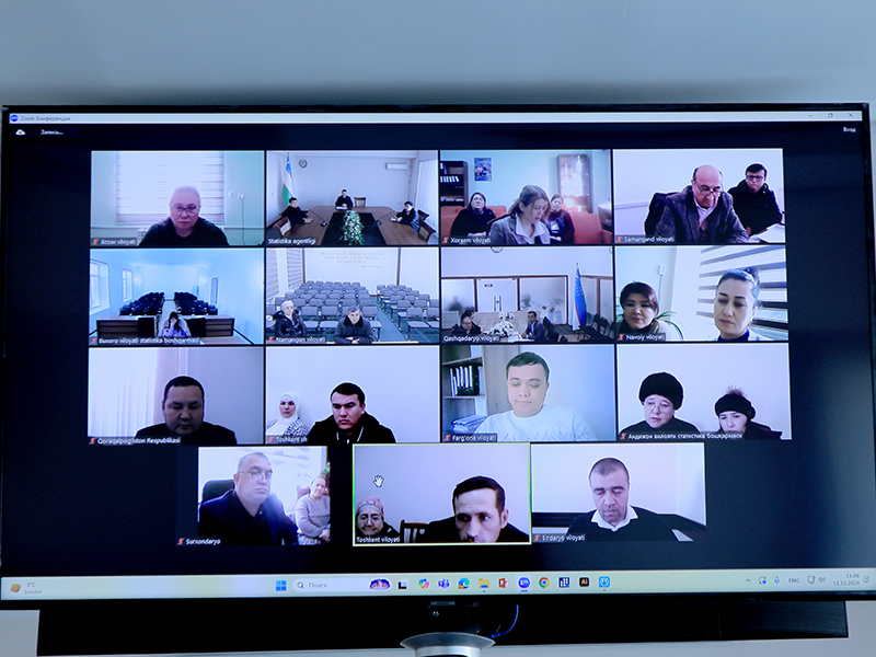 Joriy yilning 10-dekabr kuni Statistika agentligida Qoraqalpogʻiston Respublikasi, viloyatlar va Toshkent shahar statistika boshqarmalarining “Turmush darajasi statistikasi va uy xoʻjaliklari kuzatuvlari” boʻlimi xodimlari uchun Aholi turmush darajasi statistikasiga oid koʻrsatkichlar va ularni shakllantirish tartibi boʻyicha amalga oshirilayotgan ishlar holati va kelgusidagi ustuvor vazifalar yuzasidan onlayn vebinar tashkil etildi.