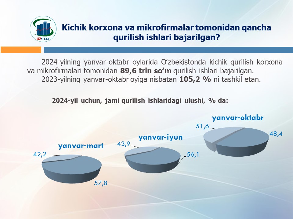 2024-yilning yanvar-oktabr oylarida Andijon viloyatida ijara xizmatlari hajmi 467,8 mlrd so‘mga yetdi.