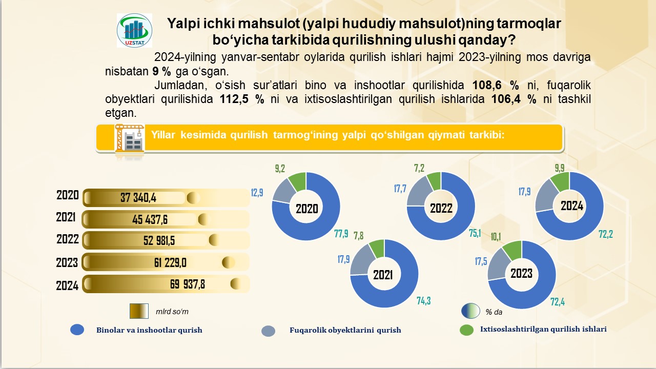 2024-yilning yanvar-oktabr oylarida, Andijon shahrida jami 2 986,1 mlrd. so‘mlik qurilish ishlari bajarildi.