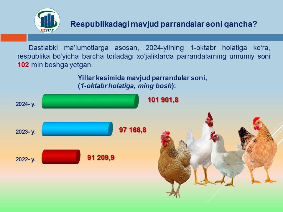2024-yilning yanvar-sentabr oylarida barcha toifadagi xo‘jaliklar tomonidan 466,8 mln. dona tuxum olindi.