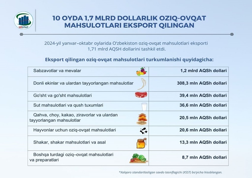 2024-yilning yanvar-oktabr oylarida viloyatning tashqi savdo aylanmasi 3 392,8 mln. AQSh dollariga yetdi.