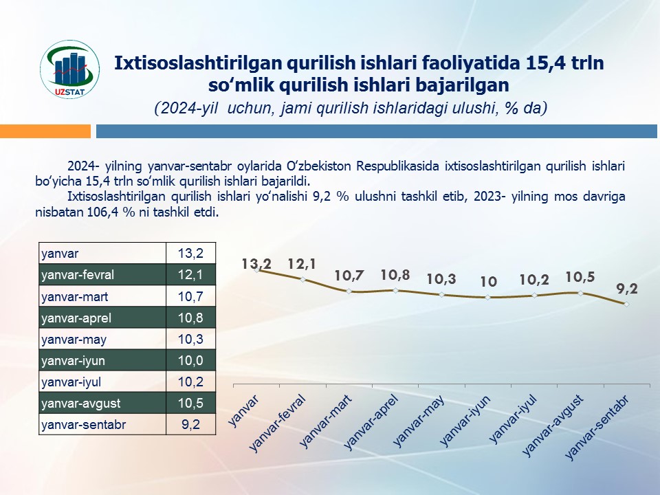 2024-yilning yanvar-sentabr oylarida ovqatlanish korxonalarining savdo aylanmasi 8 441,5 mlrd. so‘mga yetdi.