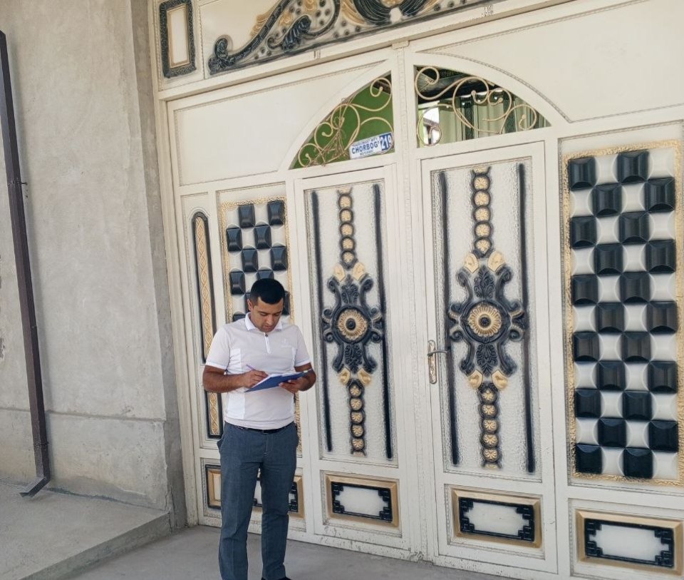 Aholini ro‘yxatga olish jarayoniga tayyorgarlik ko‘rish maqsadida hududlarda statistika organlari tomonidan mahalla faollari bilan birgalikda reja-jadval asosida mahallalardagi raqamlanmagan xonadonlarga raqam o‘rnatilganligi va nom belgilari o‘rnatilmagan ko‘chalar holatini o‘rganish ishlari davom etmoqda.