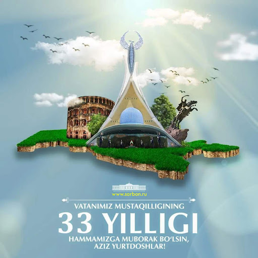 Andijon viloyati statistika boshqarmasi jamoasi sizni xalqimizning eng ulug‘, eng aziz bayrami – O’zbekiston Respublikasi Mustaqilligining 33 yilligi bilan samimiy muborakbod etadi!