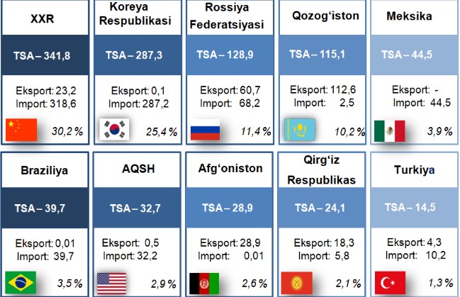Andijon viloyati jahonning 65 mamlakati bilan savdo aloqalarini amalga oshirib kelmoqda.