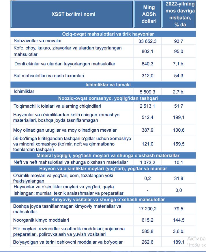 Xo‘jaobod tumani tashqi savdo aylanmasi 2023-yil yanvar-noyabr holatiga 2,7 % ulush bilan 127,6 mln. AQSh dollarini tashkil etdi.