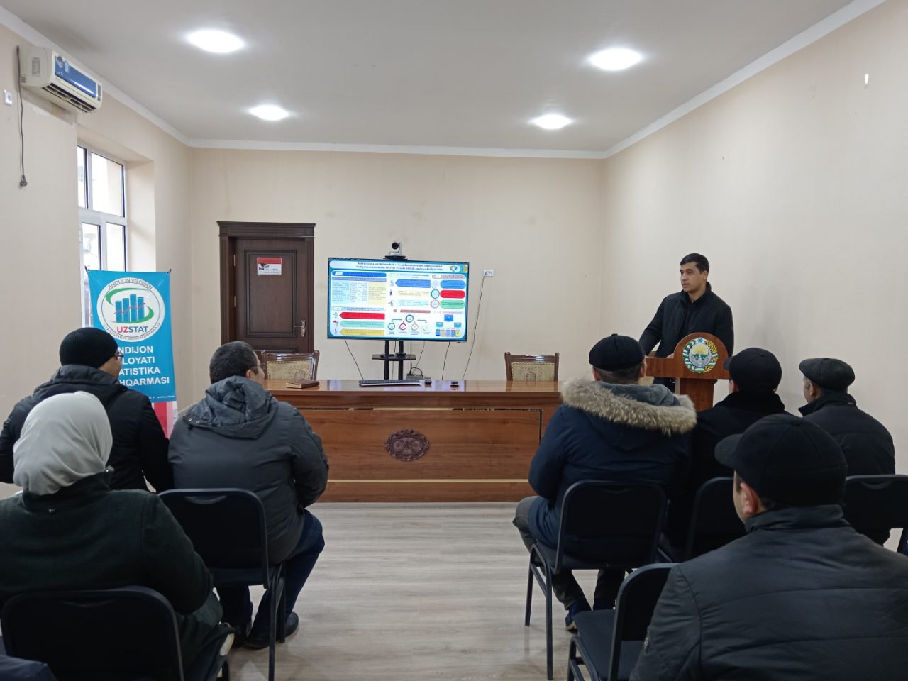 Joriy yilning 12-yanvar sanasida boshqarmada O‘zbekiston Respublikasining "Rasmiy statistika to‘g‘risida"gi O‘RQ 707-sonli Qonunining mazmun-mohiyati to‘g‘risida o‘quv mashg‘uloti o‘tkazildi.