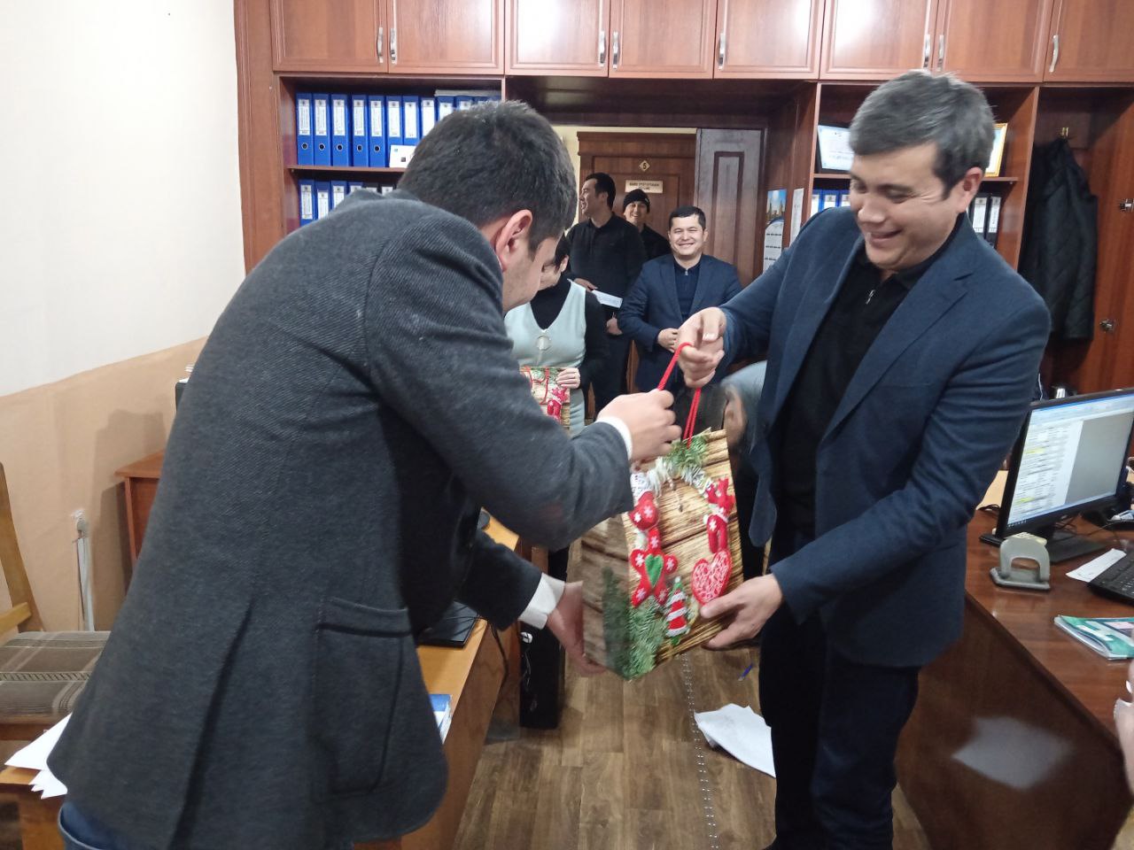 Joriy yilning 27-dekabr kuni Andijon viloyati statistika boshqarmasida yangi yil bayrami munosabati bilan boshqarma ma’muriyati hamda Kasaba uyushmasi qo‘mitasi bilan hamkorlikda tashkil etilgan yangi yil sovg‘alari tizimda mehnat qilayotgan xodimlarga topshirildi.