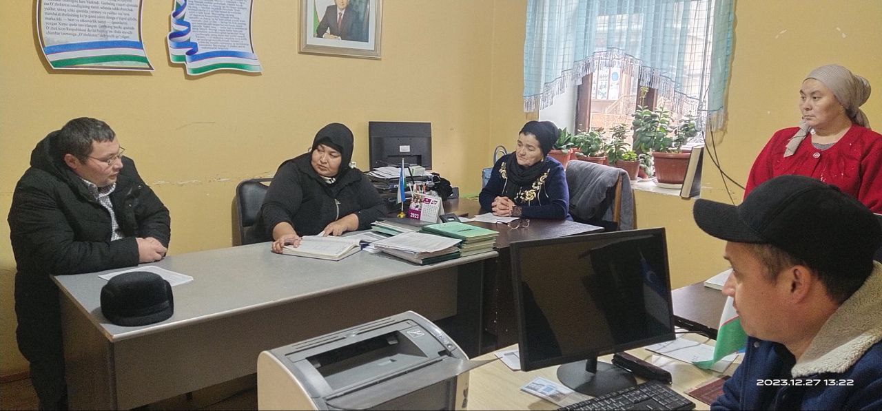 Joriy yilning 27-dekabr kuni Andijon viloyati statistika boshqarmasi boshlig‘ining o‘rinbosari D. Yangiyev Asaka tumani Navkan MFYda bo‘lib, mahalla faollari bilan 2024-yilda o‘tkaziladigan uy xo‘jaliklari kuzatuvlariga puxta tayyorgarlik ko‘rish bo‘yicha fikrlar almashdilar.