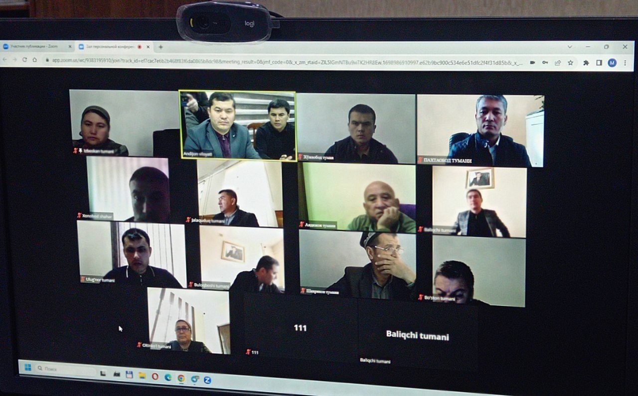 Joriy yilning 3-noyabr kuni Andijon viloyati statistika boshqarmasi boshligʻining birinchi oʻrinbosari M. Yusupov hamda “Investitsiya va qurilish statistikasi” boʻlimi boshlig‘i X. Xoldarovlar tomonidan hududlarda 4 TJ soʻrovnoma oʻtkazish boʻyicha tuman (shahar) statistika boʻlimidan jalb qilingan intervyuyerlar ishtirokida masofaviy videoaloqa orqali seminar tashkil etildi.