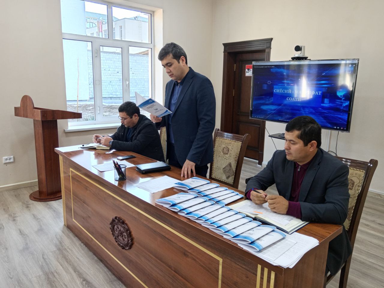 2023-yil 3-noyabr kuni boshqarmada navbatdagi “Korrupsiyasiz taraqqiyot sari” mavzusida ma’naviyat soati bo‘lib o‘tdi. Tadbirda boshqarma boshlig‘i N.G‘. To‘xtaboyev, boshqarma bolig‘ining o‘rinbosarlari M. Yusupov va D. Yangiyevlar, ma’naviy va ma’rifiy ishlar mas’ul xodimi J.Tuxtabayeva hamda boshqarma xodimlari ishtirok etdilar.