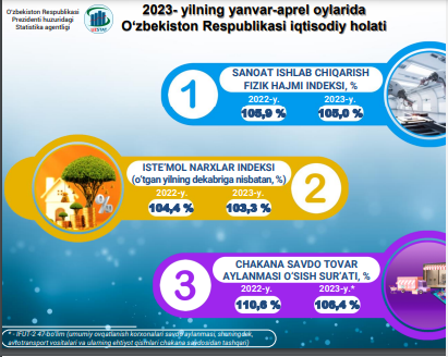 2023- yilning yanvar-aprel oylarida O‘zbekiston Respublikasi iqtisodiy holati