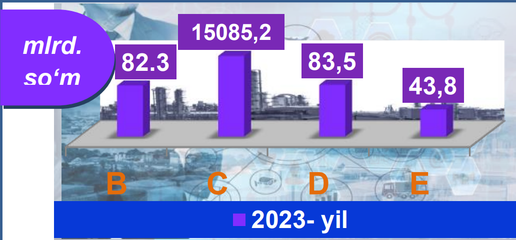 Dastlabki ma’lumotlar bo‘yicha 2023-yilning yanvar-aprel oylarida viloyat korxonalari tomonidan 15 294,8 mlrd.