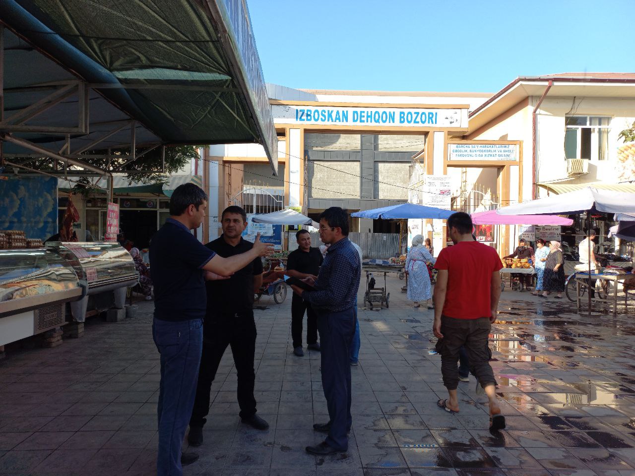 2023- yilning 10- may kuni Andijon viloyati statistika boshqarmasi boshligʻi N.G‘.To‘xtaboyev hamda Izboskan tuman statistika bo‘limi mas’ul xodimi Sh.Begmatov bilan birgalikda Izboskan tumani dehqon bozorida 5 narx haftalik kuzatuvlarni sifatli tashkil etish maqsadida kuzatuv olib borildi.