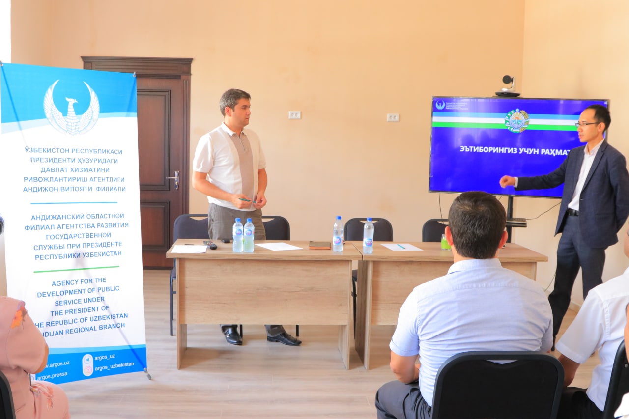 Seminarda Andijon viloyati statistika boshqarmasi boshlig‘i N.G‘.To‘xtaboyev, bosh yuriskonsult D.Rasulov va O'zbekiston Respublikasi Prezidenti huzuridagi Davlat xizmatini rivojlantirish agentligi Andijon viloyat filiali vakillari X.Mirzayev hamda boshqarma rahbariyati, boshqarma bo'limi xodimlari qatnashdi.